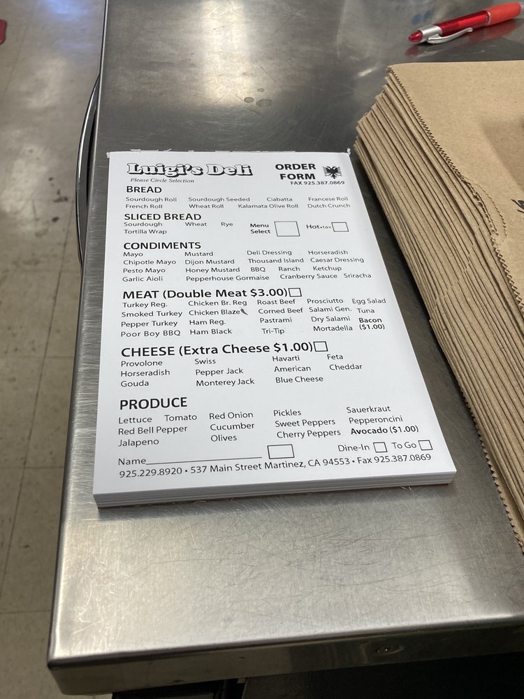 Welcome to Luigi’s Deli, where mouthwatering flavors meet hearty comfort in Martinez, CA. Specializing in a diverse array of salads and sandwiches, this deli is perfect for a casual lunch or a picnic with friends. Their menu features standout options like the #32 Cobb Salad, brimming with grilled chicken and blue cheese, and the signature Luigi's Italian Sandwich, layered with authentic deli meats and vibrant toppings.